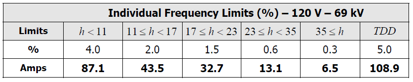 Table 2 – IEEE Std. 519 Current Limits for the Wind Plant Substation