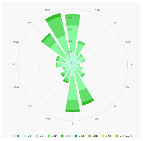 Those data are very useful for us taking into account that we have metering data for different height of erection of wind turbines. To use as much wind power, wind turbines should have large rotor diameters and be placed in an area with high wind speeds. Wind turbines are designed to start working at wind speeds between 3 and 5 m/s. Also, the turbine is designed to stop working at high wind speeds (about 25 m/s), so that there is no damage to the turbine itself and the turbine environment.