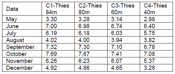 Wind data average monthly wind speed and annual [in m/sec] as measured by the potential investors are presented in Table 1 and Table 2 for months from May to December. It is, therefore, necessary to measure the wind data ate the exact location where wind generators [14, 15, 16] are going to be installed.