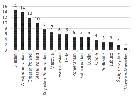 The number of power plants in individual voivodships is as follows (Fig. 2):