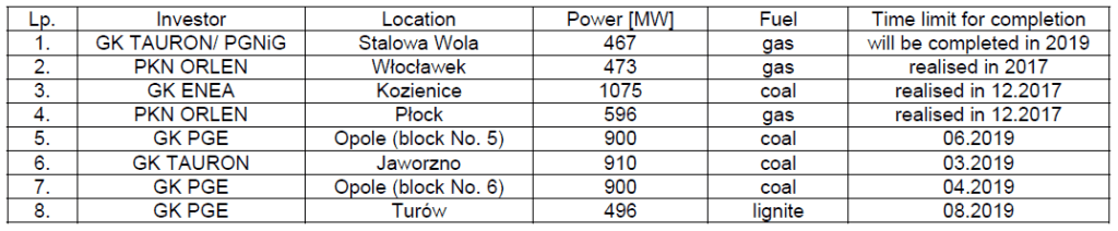 Renovation and modernization of individual power plants indicates mainly replacement of boilers, with successive new units (Kozienice 1979 – 500 MW), installation of flue gas desulphurisation systems and modernization of electrical systems. It is also planned, which should be emphasized, that in 2018 the power unit in the Ostrołęka power plant (with the capacity of about 1000 MW) and in Kozienice Power Plant (with the capacity of 1075 MW) will be opened.