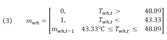 Where mwh is the status of device, mwh=0 means the device is switched off, mwh=1 indicates that the device is switched on and Twh,t is the temperature of hot water in °C at interval time t.
