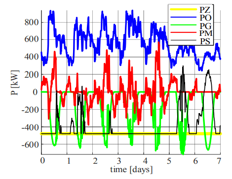 The conducted weekly simulations can be used to check the immunity of the selected scenario of power flow control in the microgrid to generation and load forecasting errors.