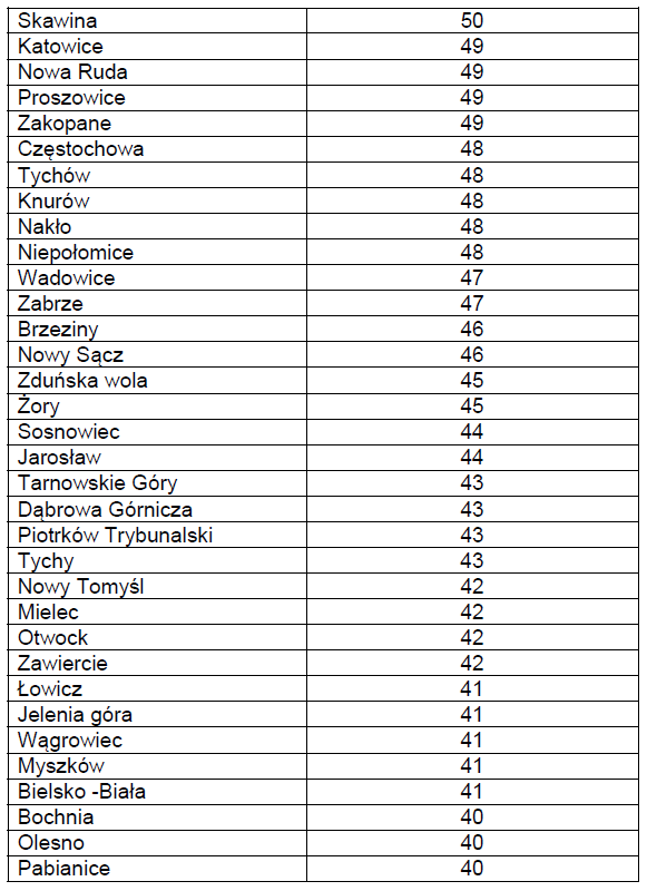 Table 1. The most smog-polluted cities of Poland [3]