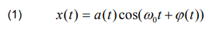 where: ω0=2πf0 is a nominal pulsation in rad/s, f0 is a nominal frequency in Hz, a(t) is time-vairing amplitude and φ(t) is a time-varying phase in radians, the phasor is defined as [7]