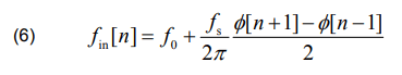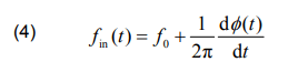 The instantaneous frequency fin of (1) is the 1st order time derivative of cosine argument in (1):