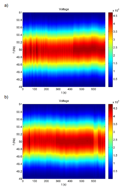 Fig. 8 depicts time-frequency voltage plots computed by DTFT with Hamming window with length 2s without overlapping with frequency step equal to 0.001 Hz.