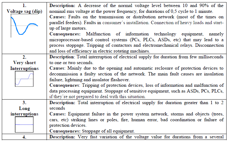 The most common types of PQ problems are presented in Table I.