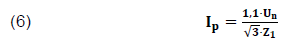 where: m is a current factor for a three-phase short circuit. Assuming value m = 1 and k = 1.1, the value of the initial current can be expressed as: