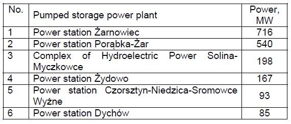 Table 2. Pumped-storage power plants in Poland [data for 2020] [23]