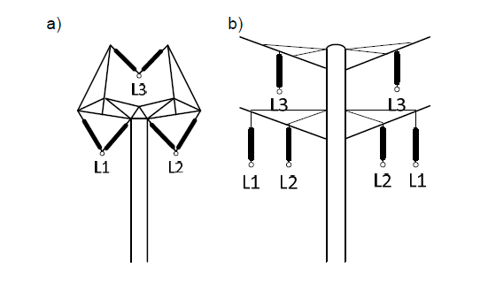 Another solution for the double-circuit line is Eagle pylon designed by Bystrup (Fig. 1b). It uses Eagle series columns that a double-circuit 400 kV line with a length of approx. 175 km was built in Denmark in 2014, which replaced the singlecircuit line. This line now forms the mainstay of the Danish transmission network, connecting Germany with Norway and Sweden.