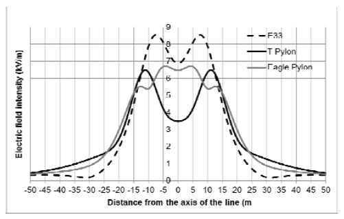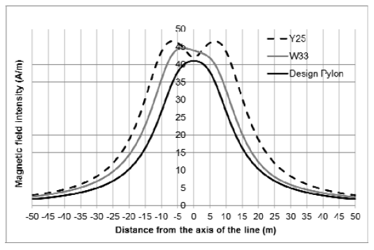 Table 1. Calculated maximum values of electrical and magnetic field existing in the vicinity of single-circuit 400 kV line
