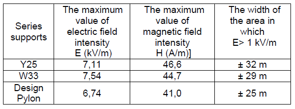 Table 2. Calculated maximum values of electrical and magnetic field existing in the vicinity of double-circuit 400 kV line