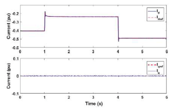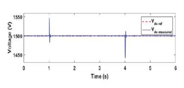 Fig 6. shows the regulation of Dc bus voltage by outer voltage control loop of inverter at 1500V. Reference current tracking by inner control loop is shown in fig 7.