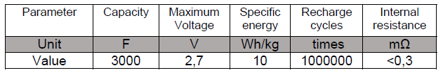 Table 2. Basic parameters of supercapacitors BCAP3000P [1]