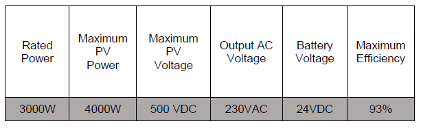 Table 4. Basic parameters of inverter Axpert VM II 3KVA [19]
