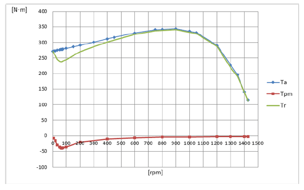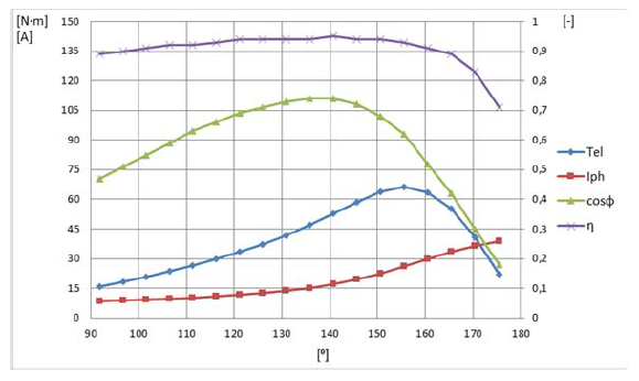 Torque-speed curves of model motor SASPM rated at 1.5 kW, 400 V, 1500 rpm (slip rings shorted) are shown in Fig. 6. They relate to: Ta – asynchronous torque generated by rotor winding, Tpm – torque due to permanent magnets, Tr – total torque.