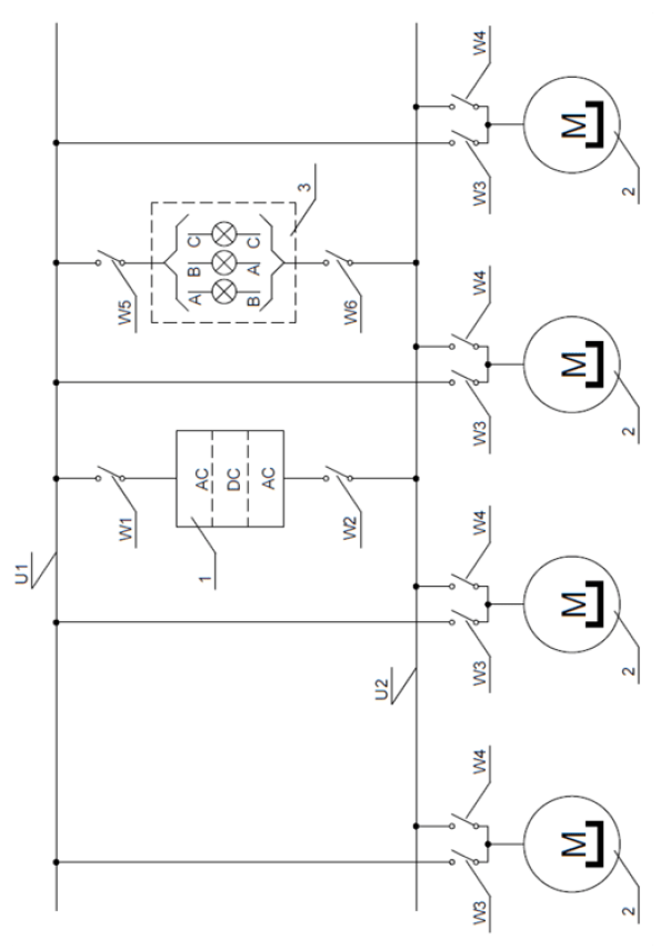 • selected motor M (2) is connected to bus U2 by switch W4; inverter’s frequency is increased up to subsynchronous