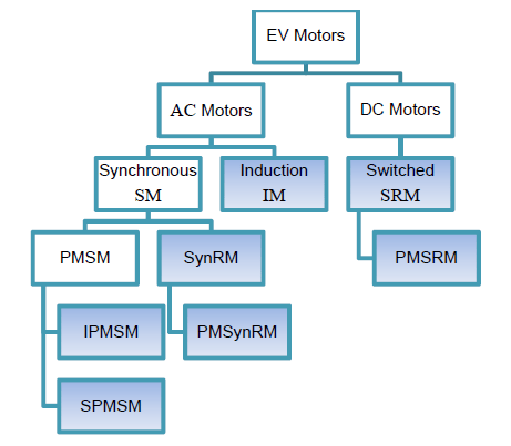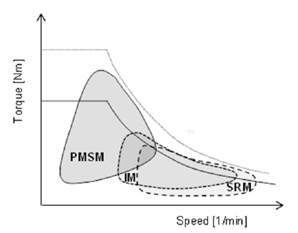 In early works (1991) [14] there were taken into consideration only three types of motors: induction (IM), permanent magnet (PMSM) and switched reluctance (SRM).