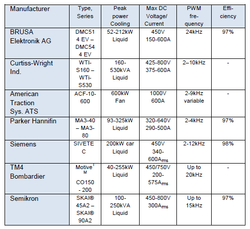 • The essential development of the converters is based on the use of SiC power modules, improvement of cooling methods due to double-sided heat removal from the structure of the device (Hitachi) and reduction of passive elements.