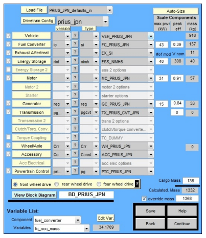 In the main program menu (Fig. 1) it is possible to freely configure the vehicle, for which simulations will be carried out.