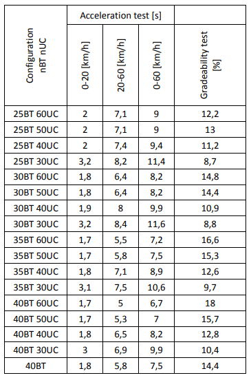 Table 1. The results of the acceleration and gradeability test