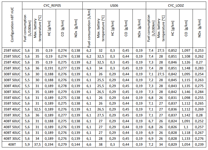 Table 2. Simulation results for the route CYC_REP05, CYC_US06 and CYC_LODZ