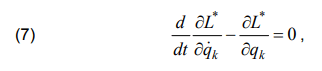 where Т~* – kinetic coenergy, P* – potential energy, Φ* – energy dissipation, D* – energy of outside nonpotential forces.