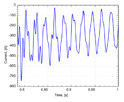 The initial value of the aperiodic component of the current depends on the moment the circuit breaker closes (for example, if the switch-on occurs when the instantaneous value of the mains voltage is close to zero, then the aperiodic component has the largest value equal to the amplitude of the periodic component of the current). The damping time constant of the aperiodic current is determined by the ratio of the active and inductive resistances in its circuit.