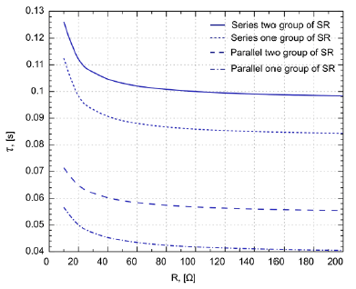 As can be seen from Fig. 5, the use of shutdown of the shunt reactor group does not lead to a significant change in the time constant, while further dragging on the value of the impedance resistance does not lead to the required increase in the time constant.