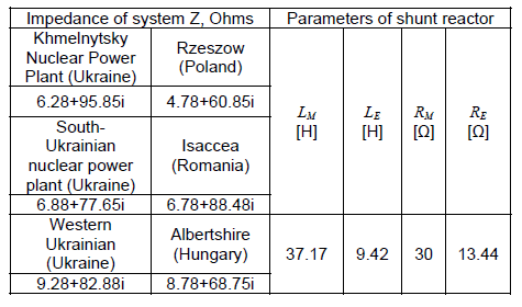 Table 1. Parameters of systems and shunt reactors