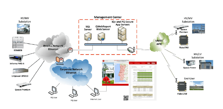About 75% of fixed PQ recorders installed in HV/MV substations are provided with Ethernet communications supported by a dedicated internal communications network. All other PQ recorders (the remaining 25% of the fixed and all the portables) are equipped with a 3G modem, supported by a mobile communications UMTS network.