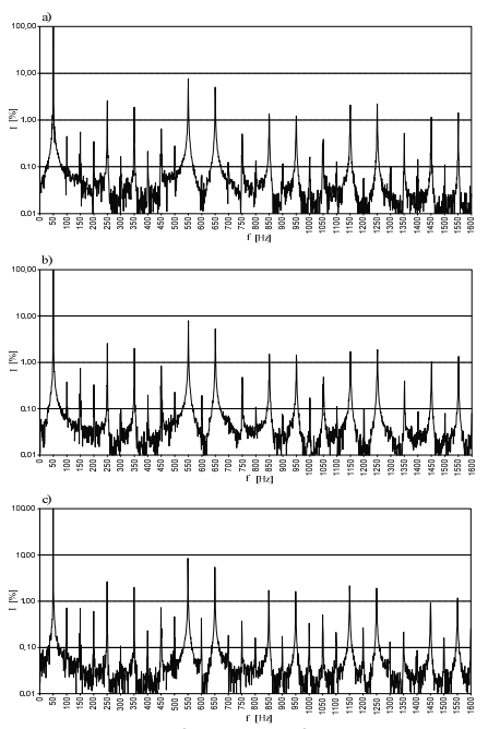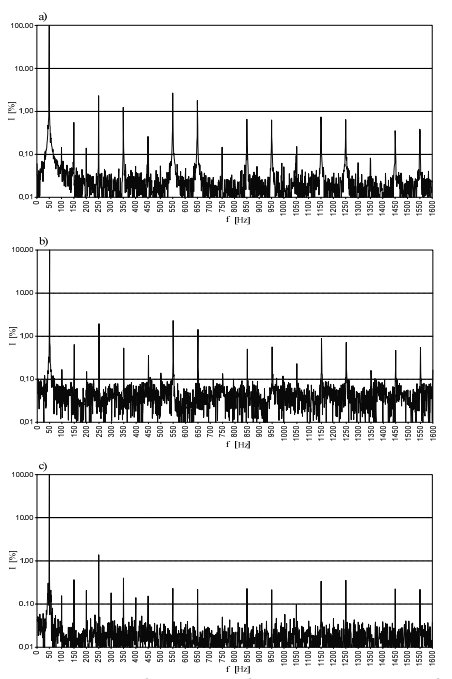 Figures 7-9 show on a logarithmic scale the harmonics spectra for individual analyzed cases.