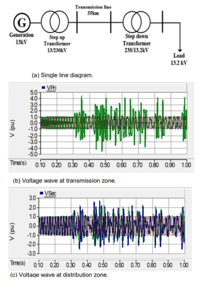 In this section, two case studies are presented. The first is the investigation of ferroresonance in 13.2 kV RDS. The second is the investigation of ferroresonance in the 13.2 kV RDS integrated with DG unit. The distribution is feeding from 230 kV overhead transmission line coming from generation plant as shown in Fig. 10a [112].