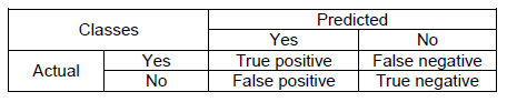 A fundamental concept about the confusion matrix is shown in Table 3. True positive is the number the model correctly predicts the positive class. Similarly, true negative is the number the model correctly predicts the negative class. Meanwhile, false positive is when the model incorrectly predicts the positive class, and false negative is when the model incorrectly predicts the negative class.