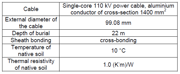 Table 1. Cable type and other parameters assumed in the analysis