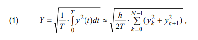 The root-mean-square value of the Y parameter is calculated based on the discrete values measured within the power frequency cycle by the expression: