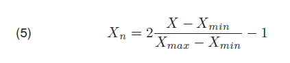 Where: Xn is the normalized data for each variable, Xmin, and Xmax are the minimum and the maximum values respectively.