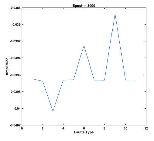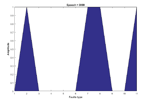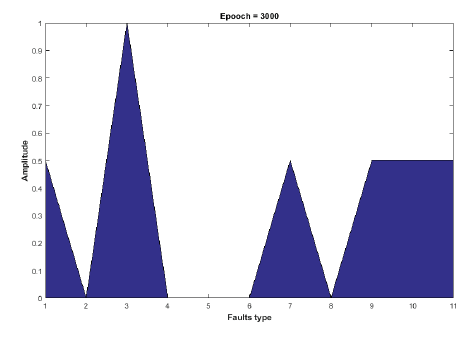 Consequently, six neurons were necessary. The outputs of each neuron in this layer were determined by following the probabilistic OR approach and the dimension of the output in this layer is 6× 2200. In layer 5, the sum average of centroids technique was used to determine the output for the CNF network. It can be seen from Equation 8 that only current data were used to define and set the fuzzification rules. Usually one parameter is used in such experiment to set the FL rules in order to reduce the experiment computation time and complexity but the increasing of the input variables could reduced the obtained error [2]. The final output dimension obtained for fault classification is 1×2200. The different FL conditions used to set the CNF technique parameters are given below