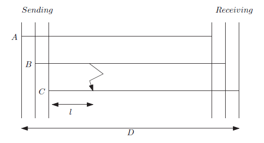 In these experiments, telegrapher’s equation was used to locate faults over power transmission lines. Telegrapher’s equation converts three phase lines to Clarke’s transformation to determine 0, alpha (α), and beta (β) variables [2, 34]. The utilization of Clarke’s transformation is recurrent in fault location because in PTL we have symmetrical and unsymmetrical faults. Three phase power transmission lines are presented in Figure 3 with a fault which occurs at l distance from the generation side.