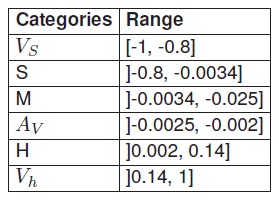 Where: Very Small (VS), Small (S), Medium (M), Average (AV), High (H), Very High (Vh)
