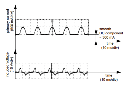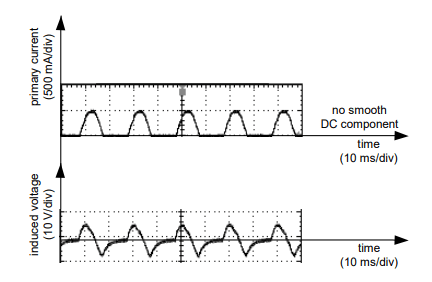 • a constant component of 300 mA is superimposed on the half-wave residual/primary waveform (Fig. 8).
