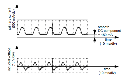 • a constant component of 150 mA is superimposed on the half-wave residual/primary waveform (Fig. 7),
