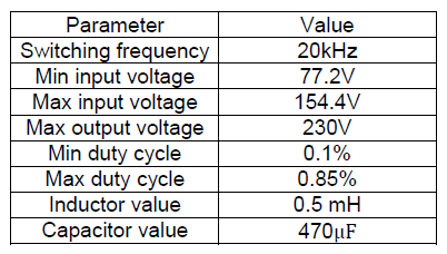 Table 2. The boost converter parameters