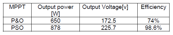 Table 2. Represents the obtained results for two algorithms ( PSO and P&O).