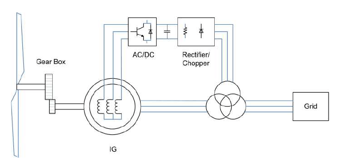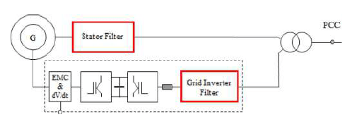Note that a variation of the conventional type 3 turbines sometimes implemented in practice does not include any active PWM converter as shown in Fig. 22. For this design of type 3 turbine, a stator-side harmonic filter is not therefore necessary.