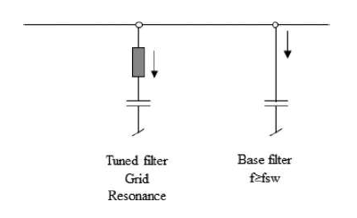 1) a tuned LC circuit for damping resonance with the transformer and the grid inductance; 2) a base filter for damping of the switching frequency and its multiples;
