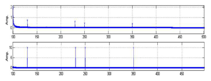 The effectiveness of the harmonic compensation using the grid harmonic damping is illustrated in Fig. 26 for a type 3 turbine. In the figure, the upper and lower graphs correspond to those with and without harmonic compensation, respectively.