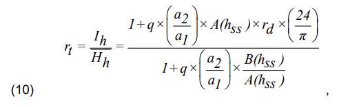 where hss is the solar light angle corresponding to the sunset, hereinafter expressed in radians. The method of calculating hss is described in [16].