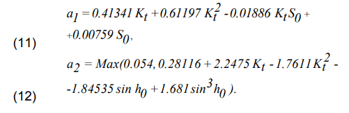 Based on the data presented by Christian A. Gueymard in [13], the daily integration (DI) model is more accurate than other methods listed above. Therefore, in this paper, the calculation of insolation is done using this method. The daily integration model is based on the calculation of rd and rt, which change during daylight hours. They demonstrate the dependence of instantaneous diffused insolation and instantaneous insolation on a horizontal surface on the total daily scattered insolation and total daily insolation on a horizontal surface, respectively.
